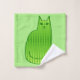 Toalla ambientada en un diseño moderno de gato retro de mediados del siglo, en un patrón sedoso y gradiente de luz a puntos verdes de cal profunda, delineados en verde esmeralda profundo, sobre un fondo verde lima claro