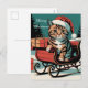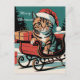 Celebre la temporada de fiestas con este encantador ilustracion de estilo vintage de un gato con un sombrero de Santa, sentado en un trineo festivo con regalos envueltos. Ideal para añadir un toque acogedor y nostálgico a la decoración y los regalos de los Navidades.