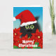 Arte digital lindo de gatito esponjoso con sombrero Santa saliendo de la planta de la poinsettia.