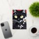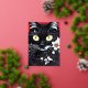 IA generó pintura de gatos negros en un fondo rojo con flores blancas y salpicaduras de pintura