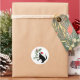 Un gato negro con un sombrero de Santa sostiene una rama siempre verde con un pájaro cardenal rojo en estos pegatinas de vacaciones.