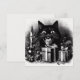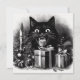 Si tienes gatos, esto no necesitará mucha explicación. Esta tarjeta con la apariencia de una ilustración antigua presenta a un gato negro con algunos regalos de Navidad, uno de los cuales el gato está comiendo. Es una tarjeta divertida para usar como tarjeta de Navidad para enviar, incluir con un regalo o como invitación. Será apreciada por los amantes de los gatos y los fanáticos del arte vintage. Esto tiene un ligero aire gótico o de terror, por lo que también podría ser apreciado por los góticos y los fanáticos del terror. De cualquier manera, es una tarjeta realmente divertida y genial para la temporada de vacaciones de invierno.
