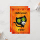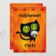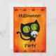 Gato asustado negro con invitación al cráneo. ¡Este lindo gatito con grandes ojos verdes sosteniendo un cráneo humano! No todos los miedosos gatos ;) Qué gran fiesta de invitación de Halloween. Este gato negro es como Edgar Allan Poe (o algo así) pero no te traerá mala suerte. ¡Lo prometo! Gatito negro de ilustracion de Madame Colonelle Chequea Fiesta Monster Store para más invitaciones a fiestas, tarjetas, regalos de Halloween, sobres y sellos postales. ¡Todo espeluznante y divertido!