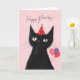 gato negro en la tarjeta de cumpleaños fiesta gorr