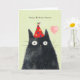 Una fantástica tarjeta de cumpleaños feliz para un amante del gato con un gato negro en un gorra fiesta y un globo rosado que dice Feliz Cumpleaños Humano. Puede cambiar el texto en la parte delantera y en el interior para que se ajuste a sus preferencias o eliminarlo por completo. Muchos de los diferentes gatos adorables de esta colección, por favor visite mi tienda.
