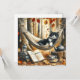 Este gráfico animal fresco muestra a un gato de esmoquin blanco y negro durmiendo en una hamaca y soñando con aventura. Al lado de este adorable gatito hay un libro abierto y al fondo hay árboles del otoño. ¡Hace un gran cumpleaños, Navidades u otro regalo de vacaciones para los amantes de los kitty!