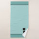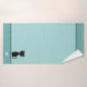 Gato negro y monograma sobre el juego de toallas de baño azul claro. Imagen de gato sólo en una esquina. Elegante y sencillo diseño para solteros y parejas.