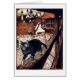 Un gato está caminando en la verja de un edificio medieval. Ilustraciones de Arturo Rackham.