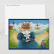 Gato, ratón, faro, barco, postal de playa