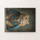 Un retrato encantador de un ginger felino esponjoso vestido con un manto azul con guarnición dorada, mirando hacia arriba con una dulce curiosidad. Los suaves tonos de estudio y los detalles pintorescos hacen que este rompecabezas sea relajante para construir y adorable para mostrar, perfecto para las familias, los niños y los amantes del gato. Elige tu tamaño y número de piezas preferidos en Zazzle.