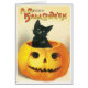 Gato Sentado En Una Tarjeta Vintage De Calabaza