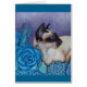 Original pintura acuática de Sandra Gale, con un gato siamés con un punto de chocolate, rodeado de flores azules sobre un fondo morado pálido. Las flores son hidrangea azul, y los cachorros azules y un rosa azul. Gran diseño para los amantes de los gatos y para los amantes de la raza siamesa. Perfecto para las paredes de las habitaciones o enmarcadas con una imagen a juego. También está disponible una pintura acuarela de un punto azul siamés.