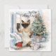 Difunde alegría por las vacaciones con esta adorable postal acuática que incluye a un juguetón gato siamés que envía un mensaje de Feliz Navidad. Perfecto para los amantes de los gatos, los aficionados al papelería y todo aquel que disfrute de los diseños festivos. Ideal para enviar cálidos deseos, regalos o para guardar como un coleccionable festivo. Hace una tarjeta de Navidad perfecta para los amigos, la familia y los aficionados al gato.