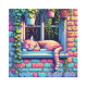 Ai arte representa a un gato somnoliento en un alféizar de ventana rodeado de plantas colgantes y paredes de ladrillo. Arte bonito para los amantes de las plantas o de los gatos.