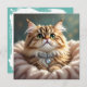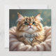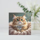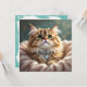 Un cobertizo para enviar una nota a un amigo. La parte delantera tiene una imagen adorable de un gatito mullido con un collar de diamantes puesto. La parte posterior está en blanco con un fondo verde azulado de bonito.
