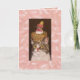 gato vegano con gorra de colibrí de calliope en la tarjeta para que lo personalizares sin costo adicional. Fondo de plumas en todos los lados