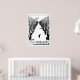 Un poster blanco y negro para los amantes de los gatos con un dibujo de lápiz y tinta de un gato negro ondeando su cola salvaje mientras camina por bosques nevados. Las estrellas felinas amantes de la libertad en la historia de los niños El gato que camina por sí mismo de Rudyard Kipling apareció por primera vez en la edición de 1902 de sus historias Just So para los niños. A diferencia del perro, la bruja independiente se niega a ser domesticada por el Hombre o la Mujer, y anuncia: 'No soy amigo y no soy sirviente. Soy el gato que camina solo y todos los lugares son iguales para mí". Debajo del dibujo principal hay un bosquejo del paisaje con la cueva donde viven hombre y mujer y donde el gato aparece en la nariz. El hombre monta su caballo pidiendo al criado del perro que venga a talar. Puede agregar un borde de color que se ajuste al botón personalizar.