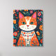 Gato y flores de arte folclórico caprichosos