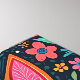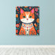 Naranja y gatito de arte folclórico azul con ojos azules y un arte de fondo floral.