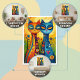 Abróchese su espacio con nuestra pintada de gatos. Con dos gatos estilizados en naranja vibrante y azul, adornados con motivos florales, colocados contra un cielo soleado y gradiente de campo gradiente, este arte exuda alegría, paz y afecto.