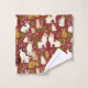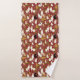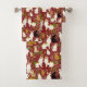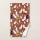 Toalla colocada en un capricho de gatos en poses naturales, rodeada de vegetación y flores, sobre un fondo rojo borgoñón/marrón, creando una estética encantadora y acogedora
