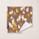 Toalla colocada en un capricho de gatos en poses naturales, rodeada de vegetación y flores, colocada sobre un fondo café marrón, creando una estética encantadora y acogedora.