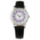 Este reloj moderno presenta un diseño caprichoso, perfecto para los amantes del gato. El reloj de temática animal muestra un patrón circular de gatos morados elegantes, creando un estilo elegante y llamativo. Con sus intrincados acentos geométricos y fondo blanco, este reloj único combina el arte con la funcionalidad. Un reloj lindo que hace un regalo excelente para los amantes del gato, es perfecto para agregar un toque de encanto a la muñeca de cualquiera. Ya sea para un amigo mascota o para ti mismo, el diseño elegante realza su encanto moderno, convirtiéndolo en un reloj de diseño.