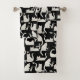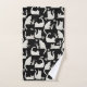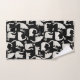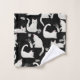 Este patrón dibujado a mano es una compilación de peludos felinos negros que golpean varias cosas - tazas de café, suculentos, telediarios y jarrones de flores. Un patrón gracioso para los que aman a sus gatos, aunque son tontos y golpean las cosas. Esta versión son gatos blancos con orejas rosas pequeñas sobre fondo negro.