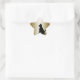 Gato sentado en un pegatina estrella con un fondo metálico de oro para resaltar la silueta del gatito para hacer un impresionante pegatina dramático de gato. El acondicionamiento perfecto para los tazones de los gatos, los cepillos de los gatos, las golosinas de los gatos alrededor de la casa y las artesanías hechas con una temática de gatos. CricketDiane Designer / Artist 2016 y Cricket House Studios Art and Design.