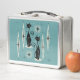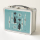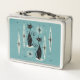 Para el gato amante, el entusiasta retro, mi ilustracion vectorial original de gatos negros elegantes, starburst, y diamantes en estilo atómico de mediados de siglo, en gris negro y pálido, en un fondo azul cadete, con grano de tela simulado.