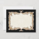 PALETA DE COLORES: Negro, crema y apariencia de metal dorado falso. COLECCIÓN DE DISEÑO: Este es un conjunto de invitaciones de boda que incluye la mayoría de los artículos que podrías necesitar para coordinar el decorado de tu boda. Utilizando arte lineal floral estilizado original vintage antiguo Art Deco y Art Nouveau, Audrey Jeanne Roberts ha diseñado gráficamente esta elegante apariencia de hoja de oro, un borde "labrado" dorado lujoso que aparece dimensional, con hojas rizadas que giran alrededor del borde con gran floritura. El trabajo de volutas es elegante y elegante. También hay divisores de tipografía de adornos de imprenta. Debajo del marco hay un patrón de diseño de fondo de encaje suave en crema. Esta apariencia es perfecta para un evento glamoroso de Hollywood antiguo, elegante y sofisticado. Fácil de personalizar tu texto utilizando los campos de plantilla proporcionados.