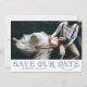 Anuncie su fecha boda con esta foto clásica guardar la tarjeta plana de fecha. Presenta una tipografía azul art deco con un patrón coincidente. Personalice agregando su foto y detalles. Este elegante tema vintage salva el anuncio de fecha es perfecto para bodas temáticos de Gatsby.