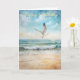Una gaviota volando en una playa. Adecuado para un cumpleaños para cualquiera. Puede cambiar el texto