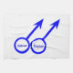 Esta impresionante toalla de cocina está diseñada para hombres homosexuales. Presenta dos símbolos masculinos azules uno al lado del otro. El fondo es blanco y hay un texto azul personalizable dentro de cada uno de los símbolos para poner nombres.