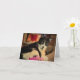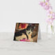 Tarjeta de nota en blanco con un encantador amigo felino mirando perezosamente sobre geranios rosas. Arte original y fotografía de susan r wood. Hace un regalo fabuloso y perfecto para los amantes del gato.