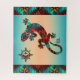 ¡Disfruten de este Puente Único de Gecko Lizard y Puzzle de Sol! Cuenta con una laguna de gecko del suroeste y un sol de fondo turquesa y Naranja.....Rodeado por un borde turquesa, Naranja y negro! Este es un original diseño de arte "One of a Kind" del artista Kerry Miller.