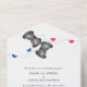 ¿Tú y tu amado vínculo sobre tu amor compartido por los videojuegos? ¡Esta encantadora invitación a la boda de Geeky Gamers es absolutamente perfecta para usted! Con un par de controladores de videojuegos grises con botones rosados y azules conectados por puntos y corazones, este original diseño original es perfecto para tu boda friki o nerdy. Personalizar con los detalles de su día especial. Haga clic en el botón "Personalizar" para encontrar opciones de personalización adicionales.