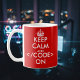 Geeky guarde la calma y el código en la taza para