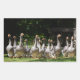 Foto rectangular pegatina de gansos de foie gras gris en una granja de gansos cerca de Sarlat-la-Canéda en la provincia de Périgord, zona de Dordoña en Francia.