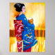 con diseño de arte original de la pintura acuarela de Sacha Grossel de Geisha japonesa con kimono azul y obi rojo brillante. Este bonito diseño está inspirado en el arte asiático y oriental y tiene detalles intrincados en el kimono con motivos florales rosas y blancas.
