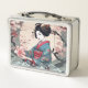 Geisha abrazando flores de cerezo en un metalizado almuerzo.