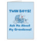 Las nuevas abuelas orgullosas de bebés gemelos amarán este diseño azul lindo que ofrece dos conejitos en una cuna azul y el texto azul que lee "me pregunta acerca de mis nietos!".