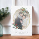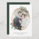 Elegantes tarjetas geométricas de vacaciones cuentan con tu foto favorita dentro de un marco inspirado en la piedra de la piedra de la piedra en un falso Relieve metalizado de oro, acentuado con hojas de color verde y bayas rojas. Personalice con sus nombres y un breve saludo de vacaciones personalizado (que se muestra con "vacaciones más felices") y añada dos fotos adicionales al dorso, junto con el año.