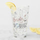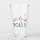 Esta copa presenta una fuente de oro rosa y texto purpurina plateado con botellas de champán, diamantes y el dicho "novia y boujee". Este cristal de una pinta es el regalo perfecto para un fin de semana de soltera.