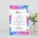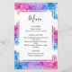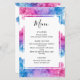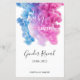 Un género de bebés revela el menú de comida fiesta. En un fondo blanco, el diseño está formado por un elegante humo azul y rosa. Dentro de una caja con un toque blanco, el texto incluye el menú de entrantes, platos principales y postres. En la parte de atrás, el apellido del bebé se muestra en la caída del humo azul y rosa, seguido por la revelación de género, la fecha del evento, o fecha de vencimiento del bebé, y el nombre de la pareja.