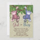 El género de monos rosados y azules revelan invitaciones de fiesta. Añade tus detalles al frente y/o al fondo de esta tierna invitación para revelar tu mono eligiendo simplemente el botón "Personalizar it!" para empezar a añadir tus detalles del evento, estilo de fuente, tamaño y color del tipo de letra, y redacción. Algunos gráficos ilustran doodles deliciosos. Tenga en cuenta que todos los diseños de invitación que encontrará en Zazzle son gráficos impresos en papel plano sin joyas, arcos, arcos, piezas grabado en relieve o añadidas.