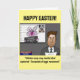 Una tarjeta con una divertida caricatura sobre el conejo de Pascua siendo arrestado por robar gallinas. La imagen, el texto y el fondo se pueden personalizar. Arte original de DBcartoons.