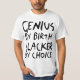 Genio por nacimiento, Slacker por la camiseta ligera bien escogida: Para el el elegante pero perezoso. Humor impresionante impar raro extraño impar extraño ridículo hilarante tonto torpe peculiar irónico perdido idiota mudo estúpido aperiódico inteligente brillante divertido del cultura Pop de la ironía de los cerebros del cerebro de la comedia de los chistes del chiste de la sátira de la parodia de la parodia.
