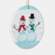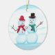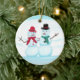 Añade algunos felices Navidades al árbol de Navidad con esta feliz pareja de nieve usando gorras y bufandas, y saludando, impreso en los adornos de cerámica colgados. También se puede personalizar con texto.