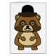 Caballero Raccoon con monóculo, bigote y gorra de bolos.